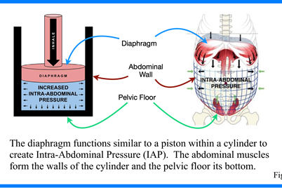 to keep your spine as one still segment requires increased intra-abdominal pressure. the diaphragm, pelvic floor, transverse abdominals, obliques and multifidus/quadratus lumborum co-contract. breathing changes this pressure, and these muscles must work simultaneously to maintain this pressure. however, increasing thoracic expansion (contracting the intercostals to expand the ribs laterally) means you can get air in with less disruption to intra-abdominal pressure. this in turn reduces the effort needed to maintain balance.